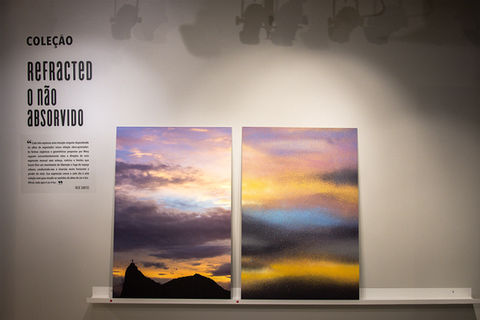 A série ‘EXTENSIONS – óticas de um céu’ trata de uma combinação entre fotografia e pintura, numa fusão de cores, onde os pigmentos da fotografia quase se misturam aos pigmentos