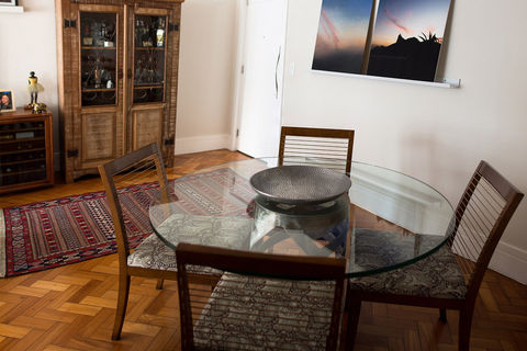 As fotografias foram realizadas pela Mary, e elas representam a vista de seu antigo estúdio de arte, de frente para a Baía de Guanabara.